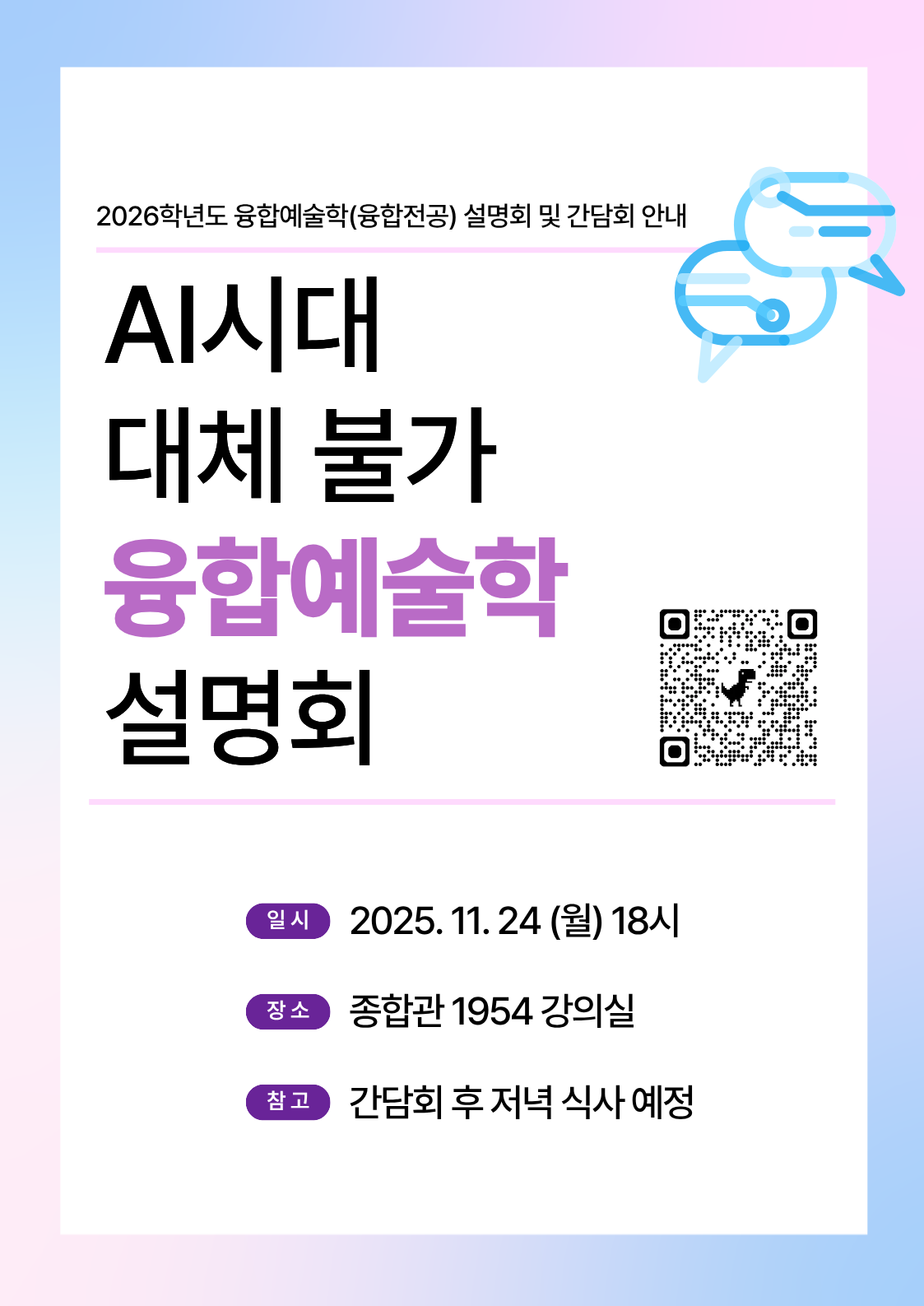 융합예술학융합전공 설명회 및 간담회 개최 안내