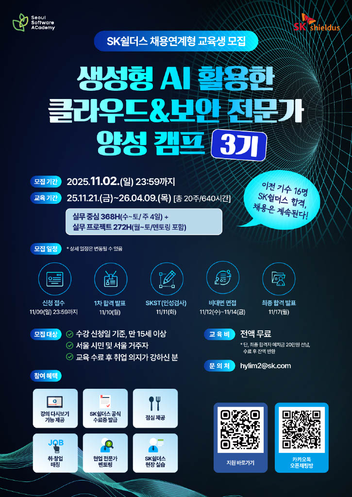 [서울경제진흥원] 2025년 청년취업사관학교 성동캠퍼스 SW 3기(SK쉴더스) 교육생 모집