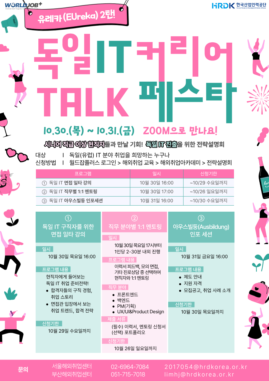 「2025년 독일 IT 직종 취업전략설명회」"독일 IT 커리어 TALK 페스타"를 아래와 같이 운영하오니,